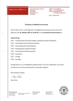 Einladung zur Mitgliederversammlung am 29. Oktober 2025